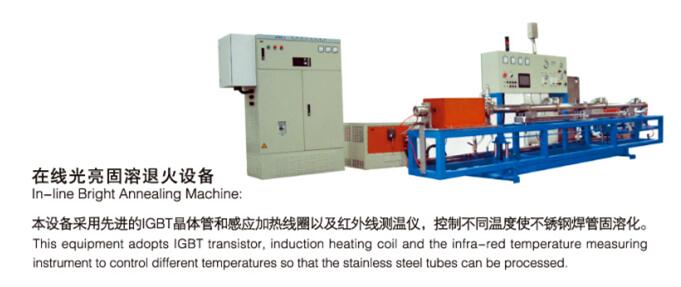 適用于將不銹鋼管Tig和激光焊接生產(chǎn)線,在線加熱至1050℃,隨后至于氫氣保護(hù)下,快速冷卻至室溫的專(zhuān)用設(shè)備,此設(shè)備必須安裝在定徑和校直工序之間。